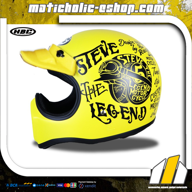 HBC Helm Cakil Retro Fullface PYPG Steve The Legend – Yellow Matt