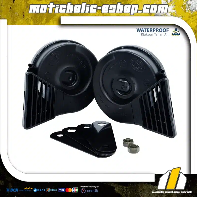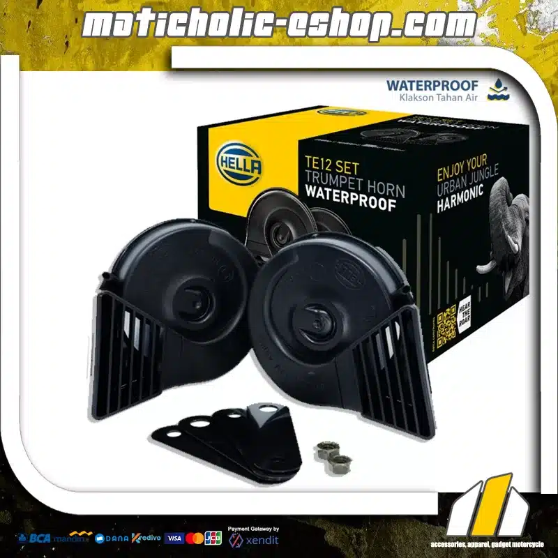 Klakson HELLA TE12, merupakan klakson keong terbaru baru dari Hella yang menawarkan design stylish dan tahan air. Sebuah klakson ringan dengan suara yang lebih keras dan harmoni nada yang baru. Mudah dipasang di tempat yang sempit dan terbatas. Suara yang nyaring dengan warna hitam yang sporty