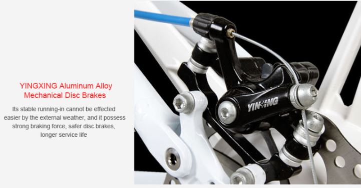 Double Braking System Sepeda ini sudah dilengkapi dua buah rem cakram di bagian depan dan belakang roda yang tentunya jauh lebih aman ketimbang menggunakan satu buah rem. |