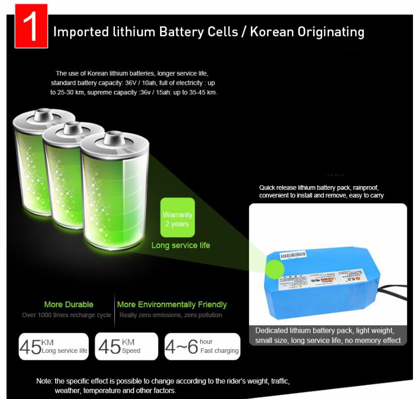 | Battery Type | Lithium Battery 48V 10.4Ah Charging Time5~8h |