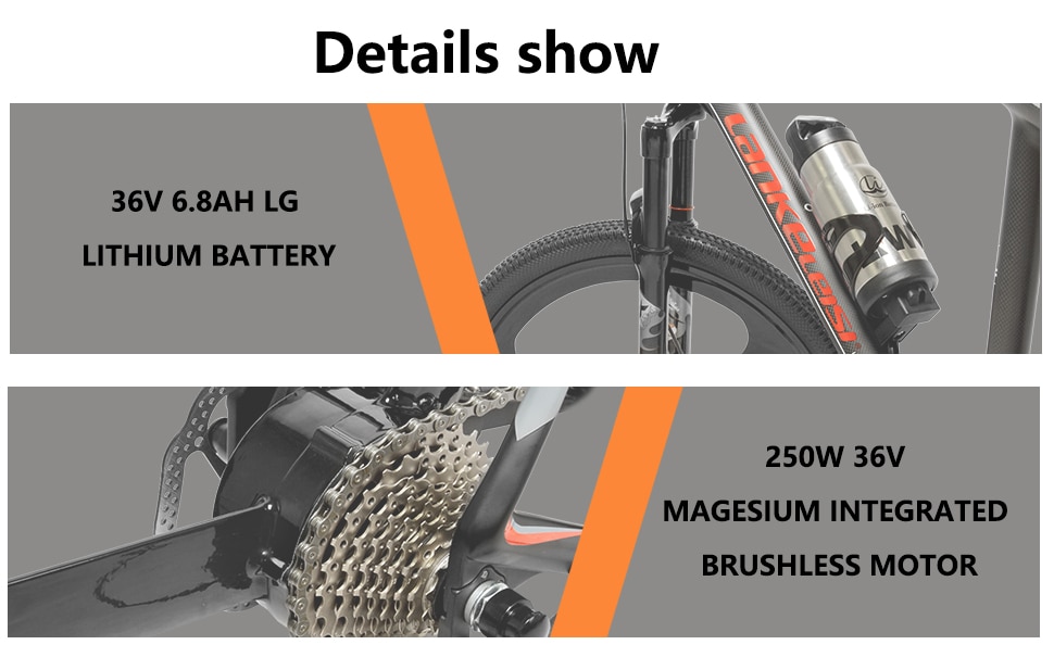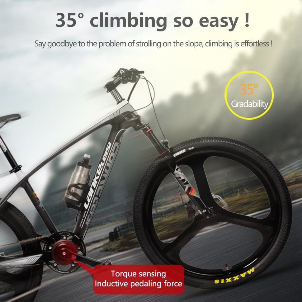 T700 Carbon Fibre Frame Sepeda elektrik ini menggunakan frame dengan bahan carbon T700 yang sangat kuat sehingga Anda tak perlu khawatir saat menggunakan sepeda elektrik Lankeleisi ini.