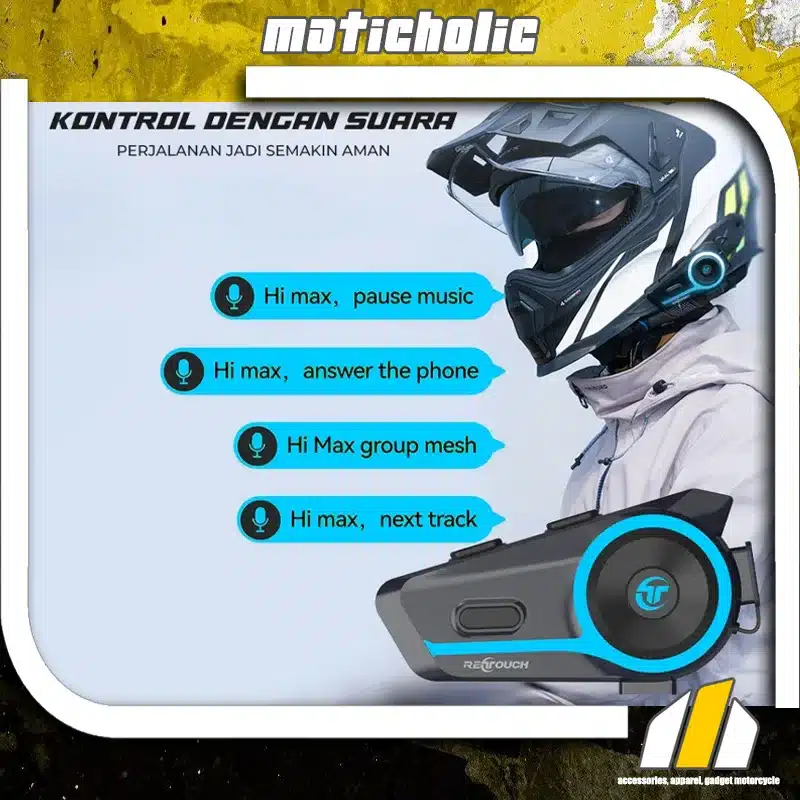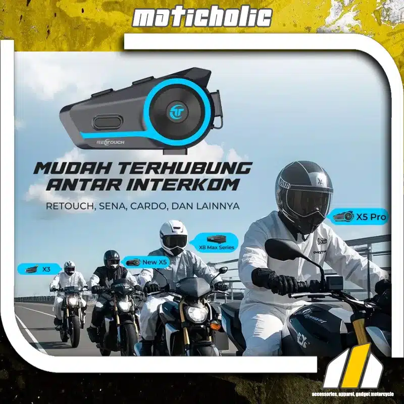 • Kompatibilitas Luas: Mudah terhubung dengan perangkat lain seperti RETOUCH, SENA, CARDO, dan brand lainnya